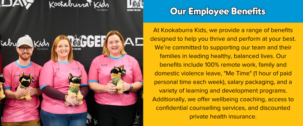 We are always on the look out for talented people who are passionate about making a difference to join our team. To see the current opportunities available at Kookaburra Kids please visit: Australian Kookaburra Kids Foundation Jobs in All Australia – SEEK