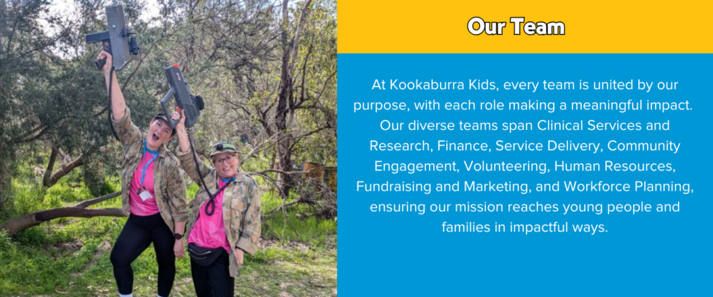 Kookaburra Kids offers diverse and rewarding careers focused on empowering young people to lead long, happy lives. Our work goes beyond individual empowerment, it strengthens communities and promotes the well-being of future generations. Our team is dedicated to equipping young people with coping mechanisms, life skills, and a sense of belonging, fostering resilience to help them face life’s challenges with confidence.