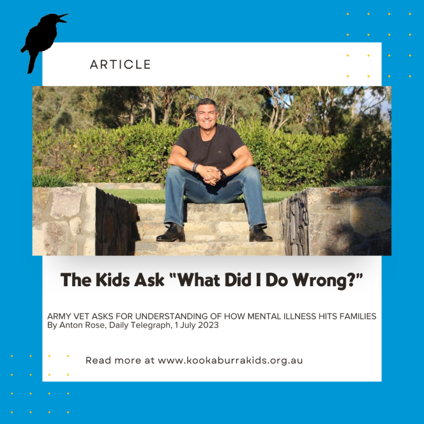 Thank you to our Ambassador Ben Farinazzo for all his support, and sharing his story to raise awareness about PTSD and how our programs can support Kids in families impacted by this condition. Below is an article published by the Daily Telegraph featuring Ben’s story.