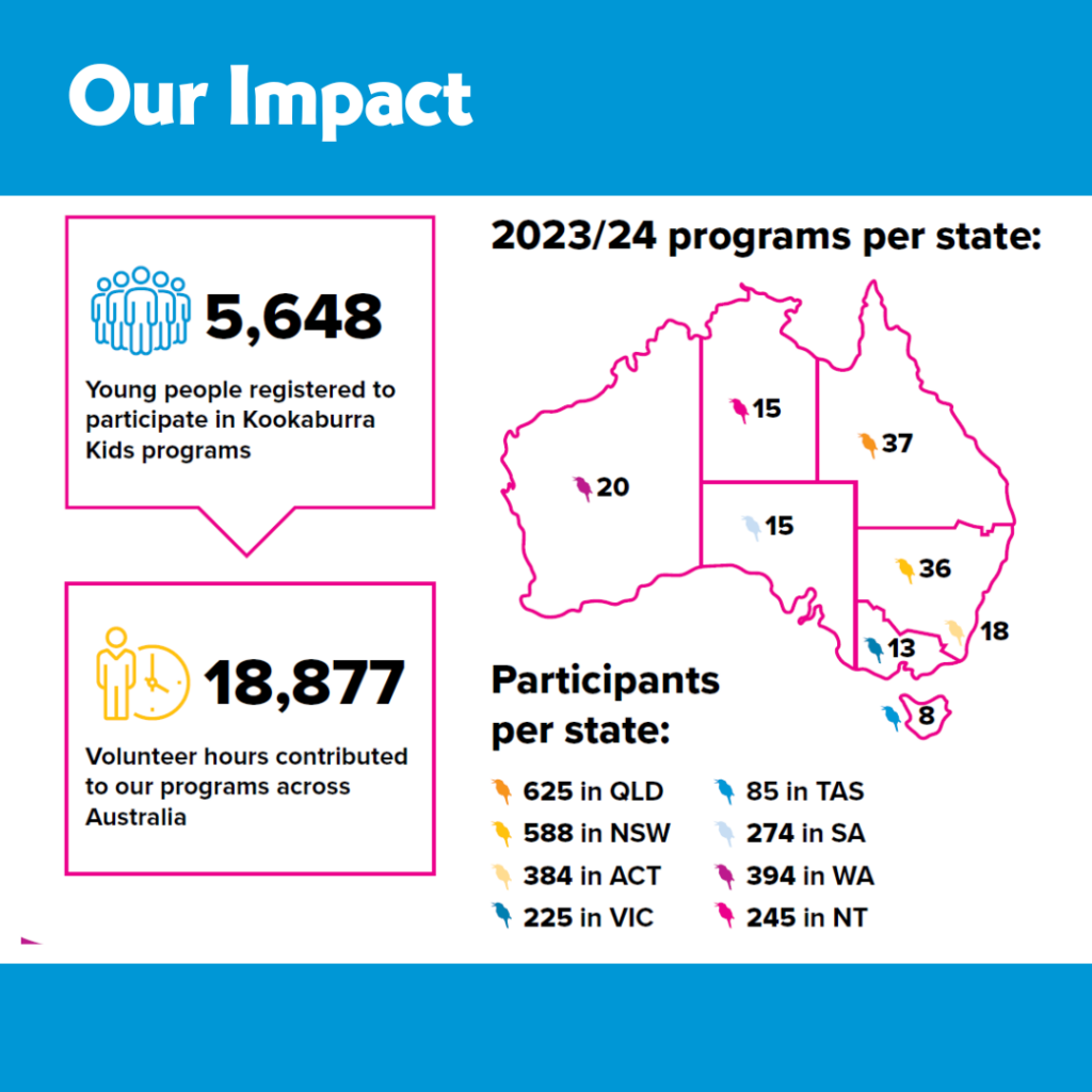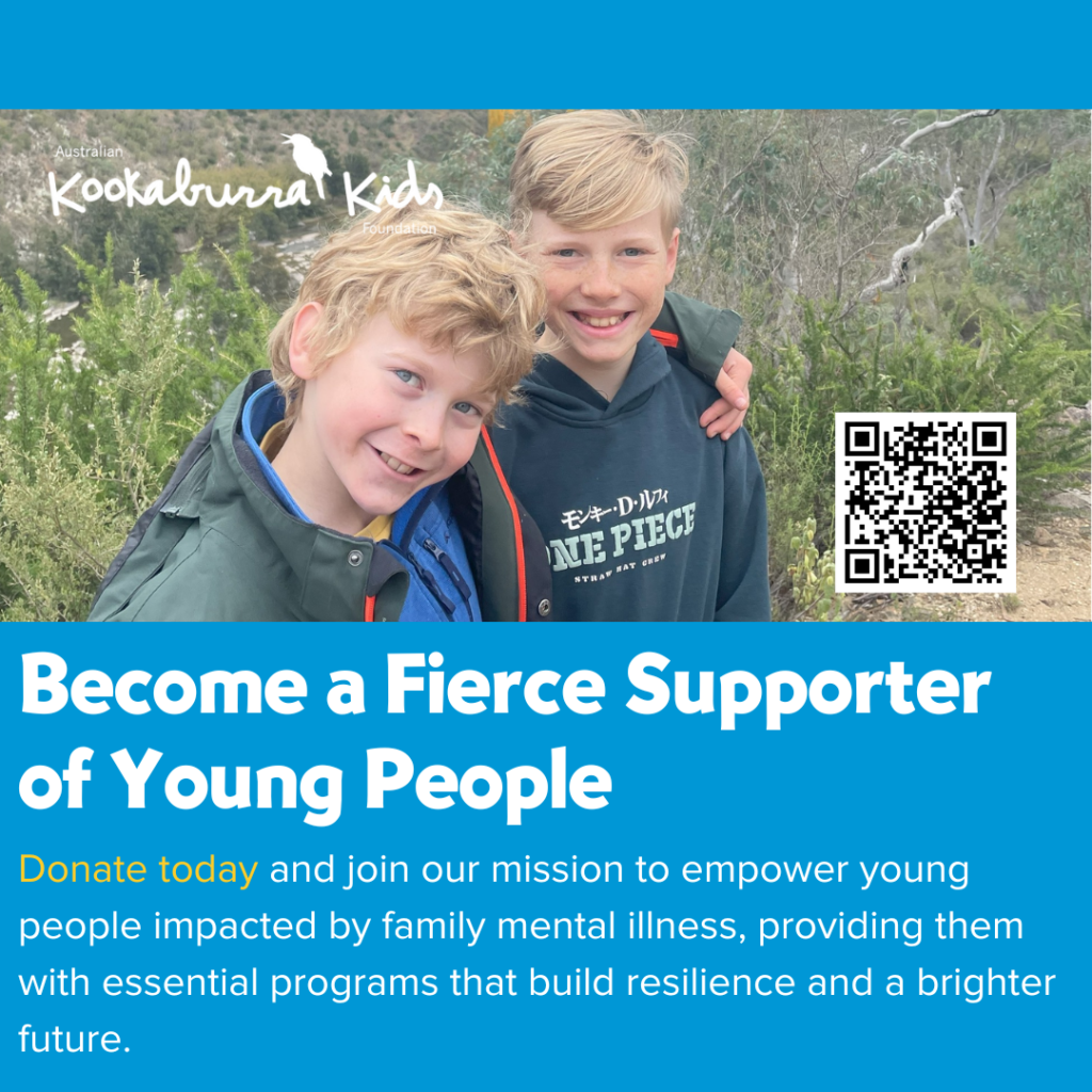 For us, every contribution is the heartbeat that fuels our work, supporting more than 3,000 young people across Australia impacted by family mental illness. Every donation, big or small, creates a ripple effect of positive change in the lives of our Kookaburra Kids!