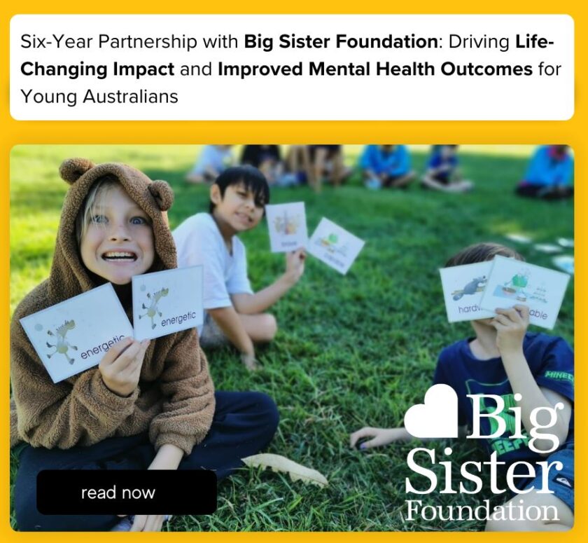 We are incredibly grateful for the partnership with the Big Sister Foundation and excited to see how the research outcomes continue to shape the future of Kookaburra Kids. Together, we are creating lasting change and empowering the next generation to thrive.