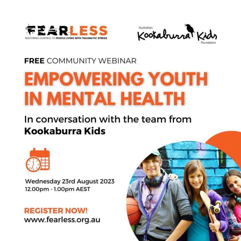 Hosted by Fearless – PTSD Australia New Zealand, our panel will be joined by Psychologist Crosbi Knight and Australian Kookaburra Kids Foundation Ambassador Belinda Neal.