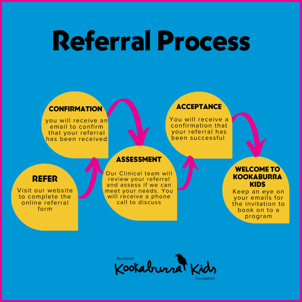 Anyone can refer a child to the program either online at Refer a Child or by calling head office on 1300 566 525 during business hours (AEST).