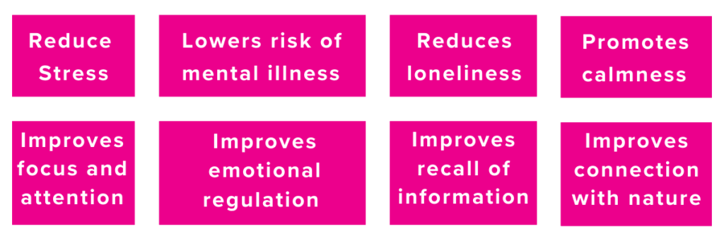 BENEFITS OF NATURE BASED INTERVENTIONS FOR WELLBEING INCLUDE: