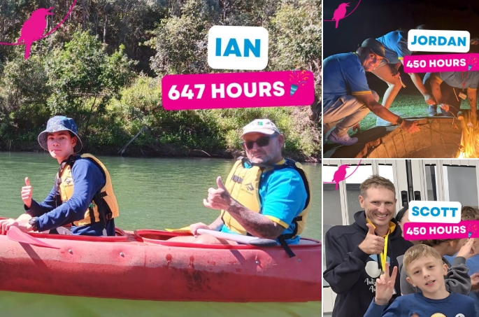 A huge thank you to Scott, Ian and Jordan, who have each contributed more than 450 volunteer hours with Kookaburra Kids so far in 2026.